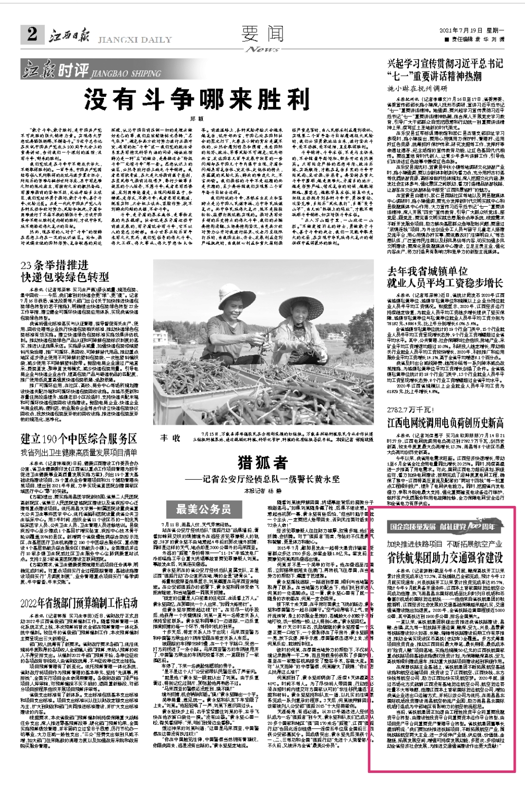 本报讯 (记者游静)截至今年6月底,赣深高铁开工以来累计投资完成率达73.3%,正线铺轨已全部完成,预计今年12月底实现通车;兴泉铁路开工以来累计投资完成率达85.7%,预计今年9月底具备开通条件;江西本土首家国际货运航空公司成功组建,执飞南昌昌北国际机场至比利时列日机场和布鲁塞尔机场的国际货运航线……一组组来自金年会官网app的数据表明,江西经济社会发展的交通基础保障越来越扎实,交通强省建设跑出加速度。2020年,全省铁路运营里程接近5000公里,其中高铁达到1900多公里,排名全国第六。