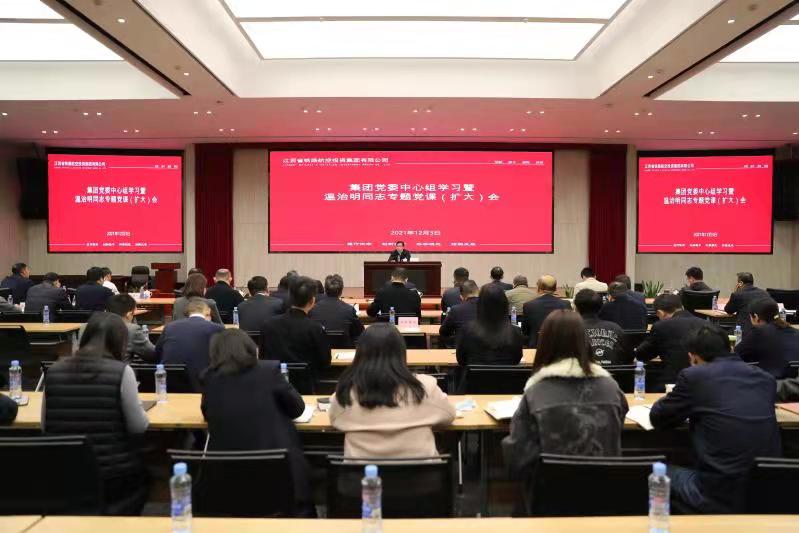 12月3日,金年会官网app党委召开理论学习中心组学习暨专题党课(扩大)会,学习党的十九届六中全会精神,集团党委书记、董事长温治明作专题宣讲报告。集团党委副书记、总经理邹洪及在家集团领导,集团总部全体员工,各全资、控股、国有控股、参股子公司班子成员现场聆听宣讲。
