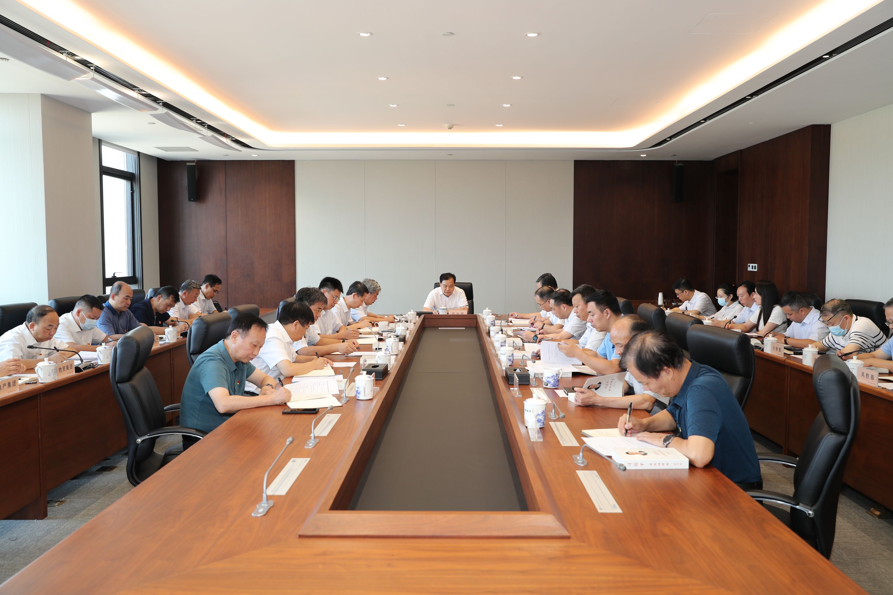 会上集中学习了习近平总书记关于全面从严治党的重要论述和党的自我革命战略思想、习近平总书记视察江西重要讲话精神和龚建华案暴露问题及其教育警示的通报。随后温治明代表集团党委作全面从严治党形势分析,集团班子成员结合各自岗位职责,对照全面从严治党形势分析材料,围绕压紧压实主体责任、加强党的政治建设、严防“七个有之”等方面依次进行了发言。