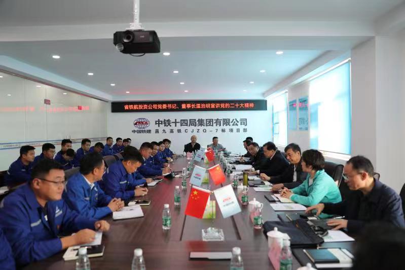 11月1日,金年会官网app党委书记、董事长温治明深入昌九高铁项目建设一线宣讲党的二十大精神,调研推动昌九高铁项目加快建设。集团党委委员、副总经理傅江斌参加。