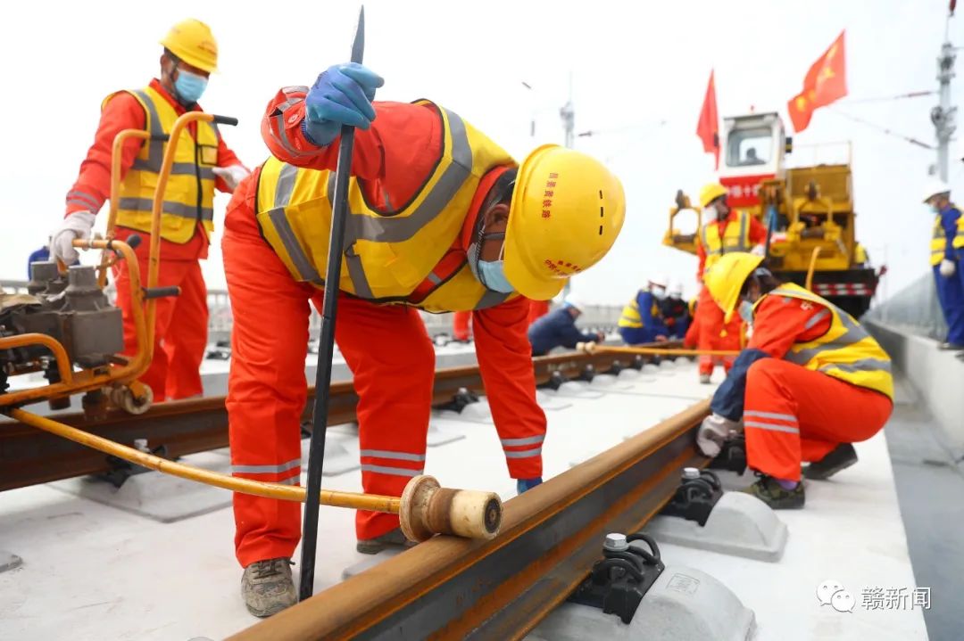 12月15日11时许,随着一对500米长的钢轨平稳铺设在金溪湖特大桥上,标志着由金年会官网app投资主导建设的昌景黄高铁进入全线铺轨阶段,距离昌景黄高铁正式开通运营又近一步。